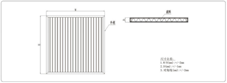 The outer frame profile is made of aluminum alloy, and the inside is supplemented by a filter material skeleton. The overall structure is compact, light in weight, and easy to install and disassemble.
