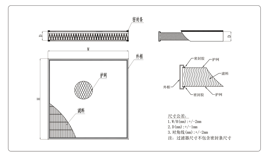 鋁合金外框,雙面護網(wǎng),保障過濾器在運輸及安裝過程中不易損壞
