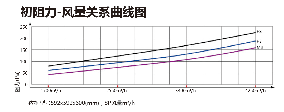 外形尺寸 袋數(shù) 濾料面積 過濾效率 額定風(fēng)量 不同風(fēng)量下的初阻力(Pa)