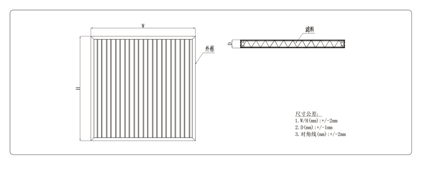 外形尺寸 額定風(fēng)量 過濾效率 初阻力 建議終阻力